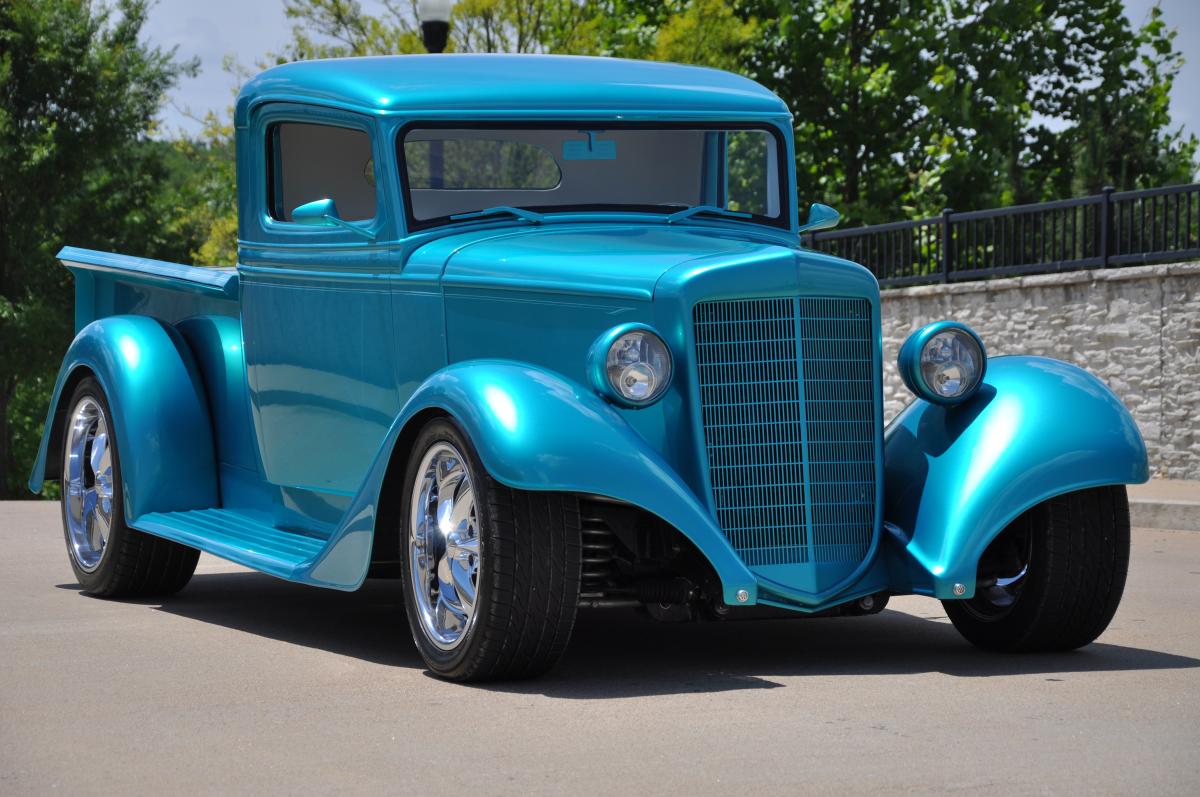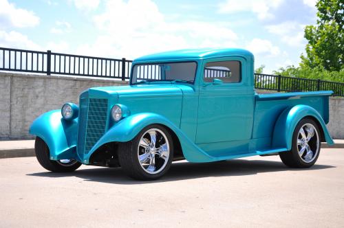 This 1934 International pickup was built by a local street rod builder here in my home town. The truck was his personal truck and driven over 13,000 miles since its build. The builder was highly regaurded in the street rod world and built many cars over the years. The all steel body is very nice, chopped and channeled 3 inches. The body sits on its original frame with Mustang II style IFS and a Corvette rear axle and suspension. The truck had many body mods such as suicide doors, shaved door handles, the hood opens from each side, smooth hood sides, Harley Davidson headlamps and and the bed cover is electric. The truck is finished in Hawaiian Teal base coat clearcoat all over. The truck was just sanded and buffed very slick. There is no damage or bubbles on the body. The Powerplant is a 350 cid backed by a 700r4 overdrive transmission. The engine is nicley detailed... a B&M 671 blower fed by twin holley carbs, mallory unilite distributor, rod works coated headers and 3 inch exhaust. The truck has power steering, 4 wheel power disc brakes, Vintage heat and A/C and is a blast to drive! Again 13,000 miles has been put on the build and the truck is very smooth and reliable. The interior is all white leather and still very nice, Dolphin Gauges were used as well as a GM tilt column and an aftermarket wiring harness. Everything works on this truck and it did have its 2013 NSRA saftey inspection which it passed. Wipers,horn,signals,interior lighting everything works. The cool custom console houses all of the controls and switches giving the interior a very clean look. The truck has a good amount of space as the builder was over 6 ft tall and drove it everywhere. I have been driving the truck frequently and it does as it should,it doesnt run hot and can run 80+ MPH on the interstate. Call Scott at 615 476 1195 for more details. Dont miss this one! DO NOT HESITATE TO CALL... THESE TRUCKS GO FAST! Tn residents will pay all applicable tax ,tag and doc fees. All out of state buyers will pay a $124.95 doc fee and a .003% tax required by my state on all out of state sales. (about 30 bucks on 10k)