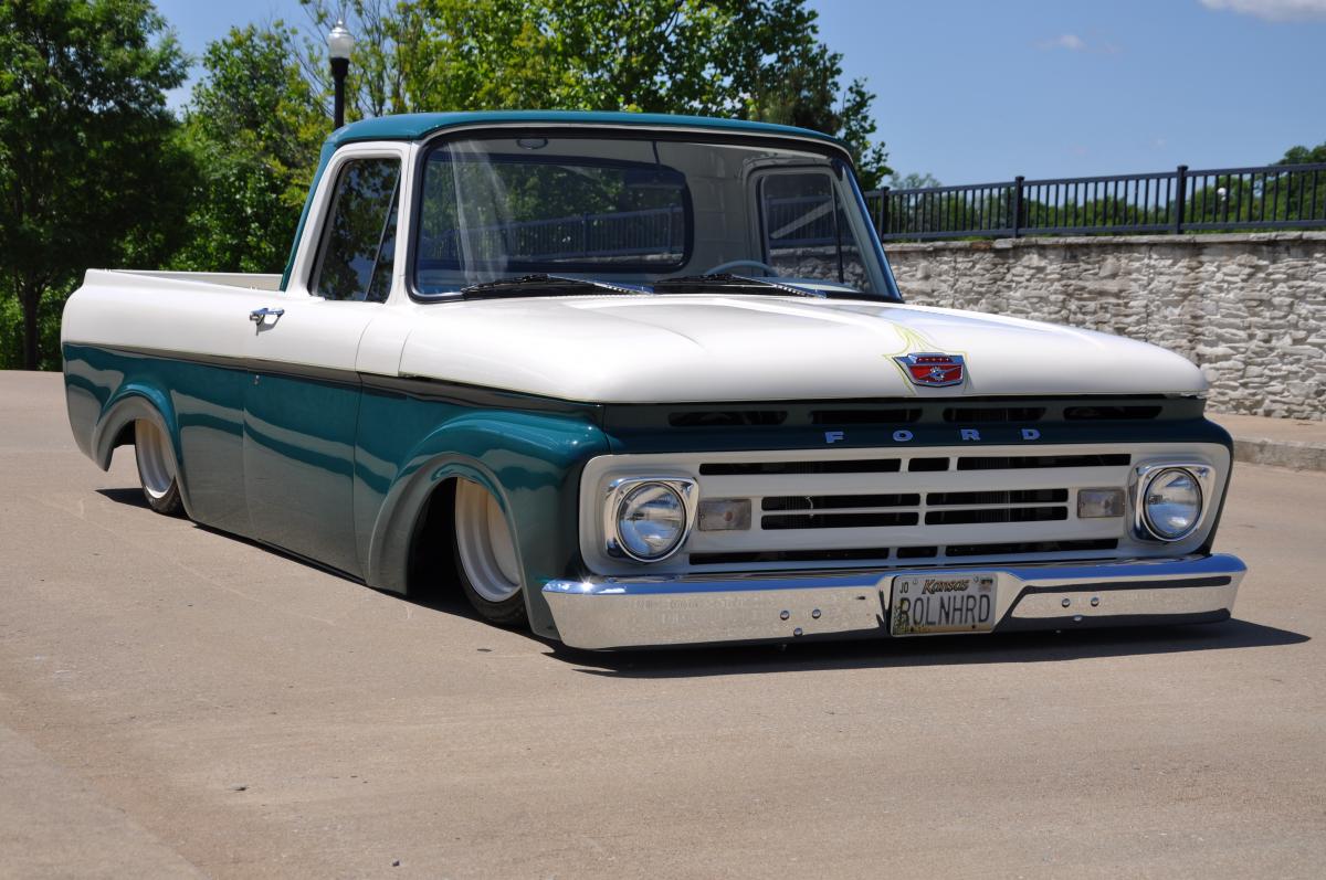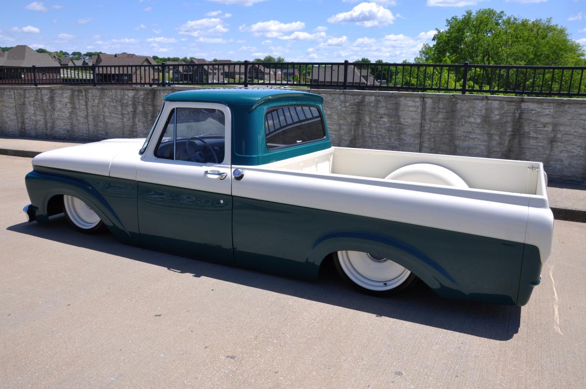 This 1962 Ford F 100 Unibody Truck is a fresh build completed in December of 2015 with only 450 miles since completion. The truck as you can see is very slick and straight in its original Holly Green and Colonial White. This is a frame off restoration and media blasted to bare metal. The truck has all new glass and weatherstriping, chrome and britework. The frame is the original to the truck and modified up front with a Mustang II styled Toyota based IFS with tubular control arms and 11" power disc brakes. The parts are readily available at any parts store for the brakes and such. The rear suspension setup is a 4 link for the stance an ride quality. The frame work and suspension was done by Laodies Kustomz, the controls are from Little Larrys making the air suspension a snap to control. Twin Viair compressors were mounted in the rear frame section along with the 5 gal tank. I included a couple of pictures at ride height along with it aired out. The 20" wheels were supplied by MOB steel and the tires are new also. The powerplant is a 351W backed by a rebuilt C6 transmission. The engine is very nicely detailed with an Edelbrock aluminum Intake, Edelbrock 4 barrel carb, headers, HEI ignition, power steering and Vintage A/C. The truck also has a fresh 9 inch rear axle with 2:75 gearing for highway cruising. On the inside the two tone green bucket seat interior is very nice. The dash and interior sheet metal is finished very nice and completed with a all steel custom headliner. The trucks vitals are montiered by a Dakota Digital instrument cluster make for a 60s F 100. The truck has a center console with houses the Air ride controls for easy operation. A tilt column and a custom steering wheel were also added to finish out the interior. The truck has again 450 miles put on the build and you cant beat the people off of it at a show! This one is is an absolute crowd pleaser anywhere you take it Dont miss out! These trucks are getting hard to find so call Scott at 615 476 1195 for more details. DO NOT HESITATE TO CALL... THESE TRUCKS GO FAST! Tn residents will pay all applicable tax ,tag and doc fees. All out of state buyers will pay a $124.95 doc fee and a .003% tax required by my state on all out of state sales. (about 30 bucks on 10k) TNRODS