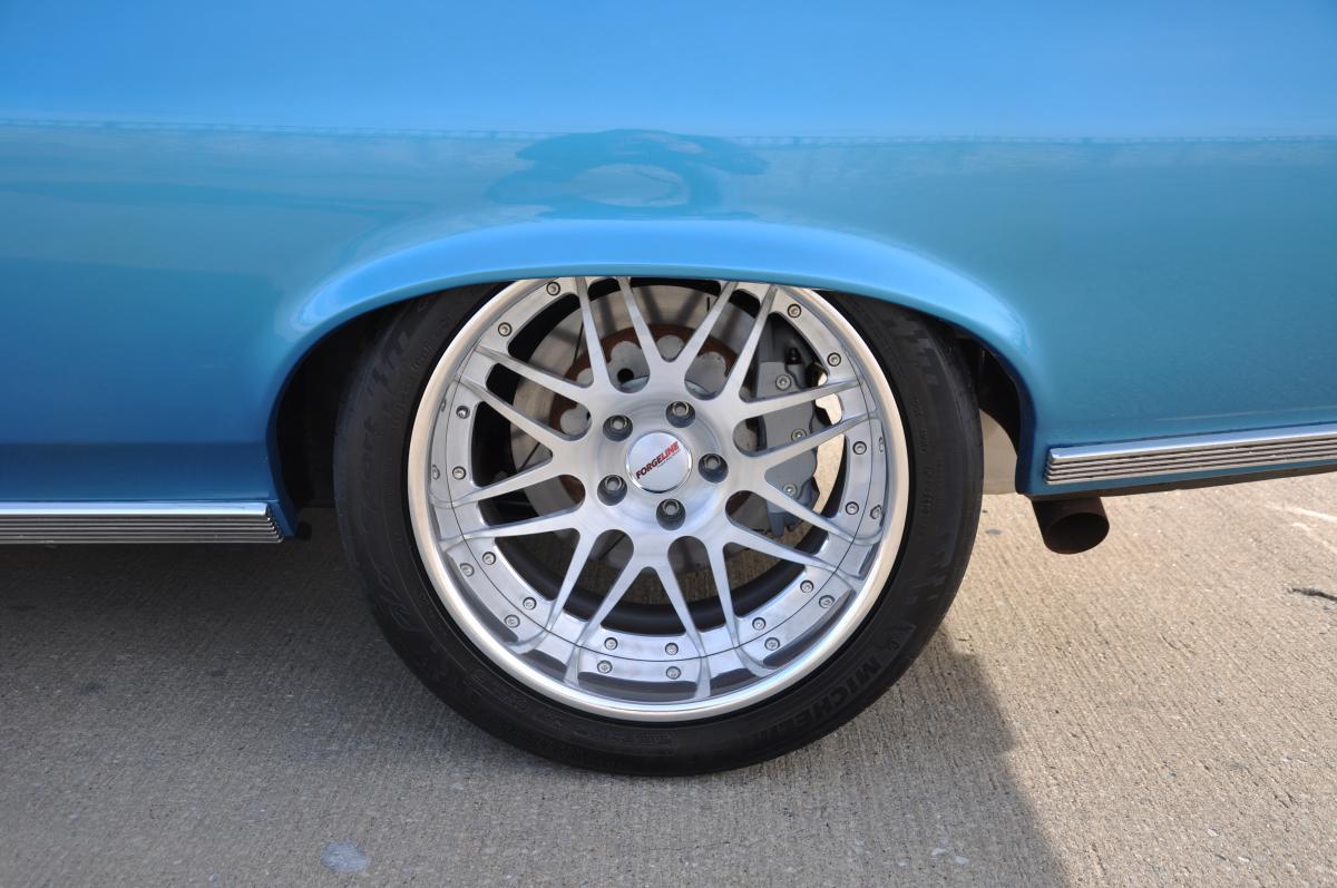 If your in the market for a "real" Pro Tour car we have it!!! This car is performance oriented in every aspect. The car itself is a super solid Marina Blue car with base coat /clear coat paint. The car has new glass and Weatherstriping as well as the chrome. The cars stance is the first thing that strikes you wjhen you look at it! This was achieved by a custom built subframe and a 4 linked rear axle, The subframe was built narrow to accomodate the big 18x 10 inch front wheels and using DSE rear sheet metal and tank the massive 19 x12 inch rear wheels are tucked deep. The wheels are Forgeline Motorsports and the tires are Michelins 275/35/18 and 345/30/19. The cars suspenion is coilover front and rear with Corvette C-5 Control arms and C-6 big disc brakes on all four corners. The car is powered by a LS-2 with a Texas Speed camshaft and a hot tune. The car has a Tremec 6 speed AND A 9 inch rear axle also. Vintage air was also added as well as a custom sound system. The car has Black leather Pro Car seats with a Covans Dash and auto meter gauges. A tilt column was a must as well as the Billet Specialties steering wheel. This car is a serious car... not for a novice... very fast and built well to handle it. Call Scott at 615 476 1195 for more details